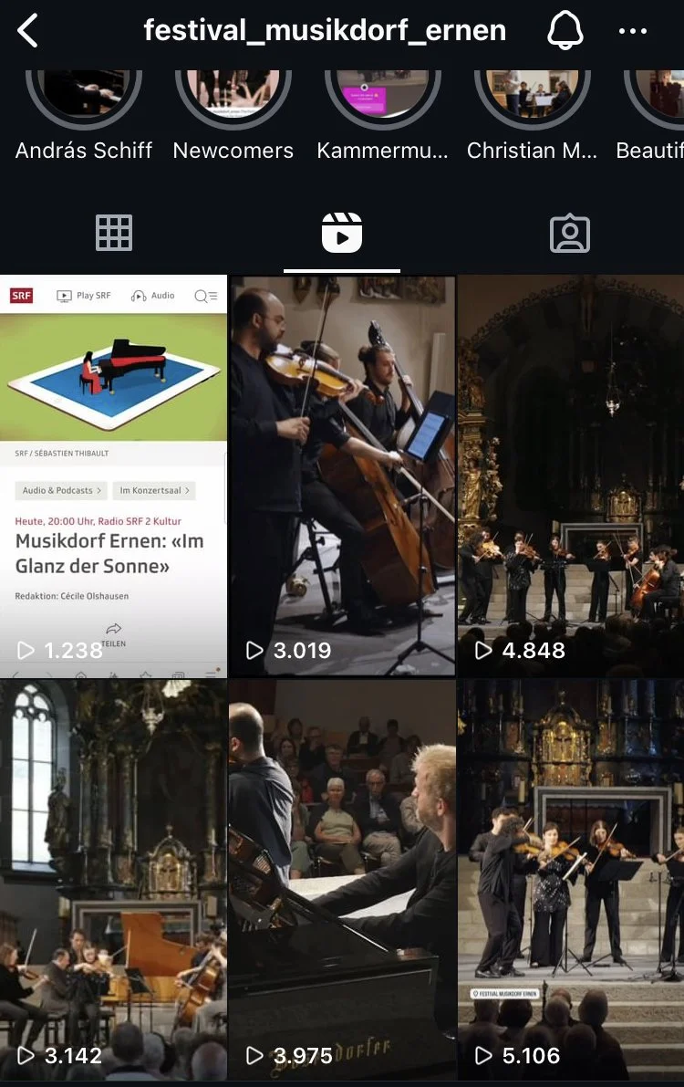 Ausschnitte aus den Konzerten eignen sich gut für Social Media Reels und Beiträge und werden gerne von vielen Menschen gesehen und geteilt (Instagram, Facebook, TikTok, Linked In, etc)